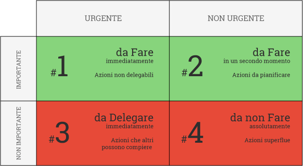 - Urgente e importante (compiti da svolgere immediatamente);