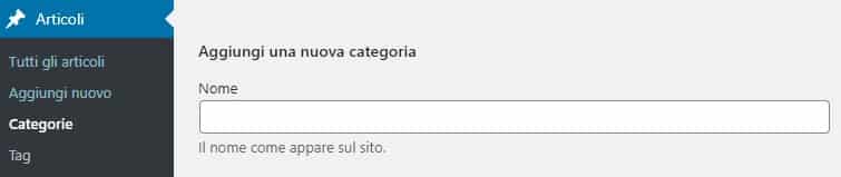 Andiamo sul menu di sinistra e selezioniamo articolo > categorie. A quel punto possiamo creare le prime categorie con relativa descrizione e permalink, in modo che siano ottimizzate per i risultati di ricerca.